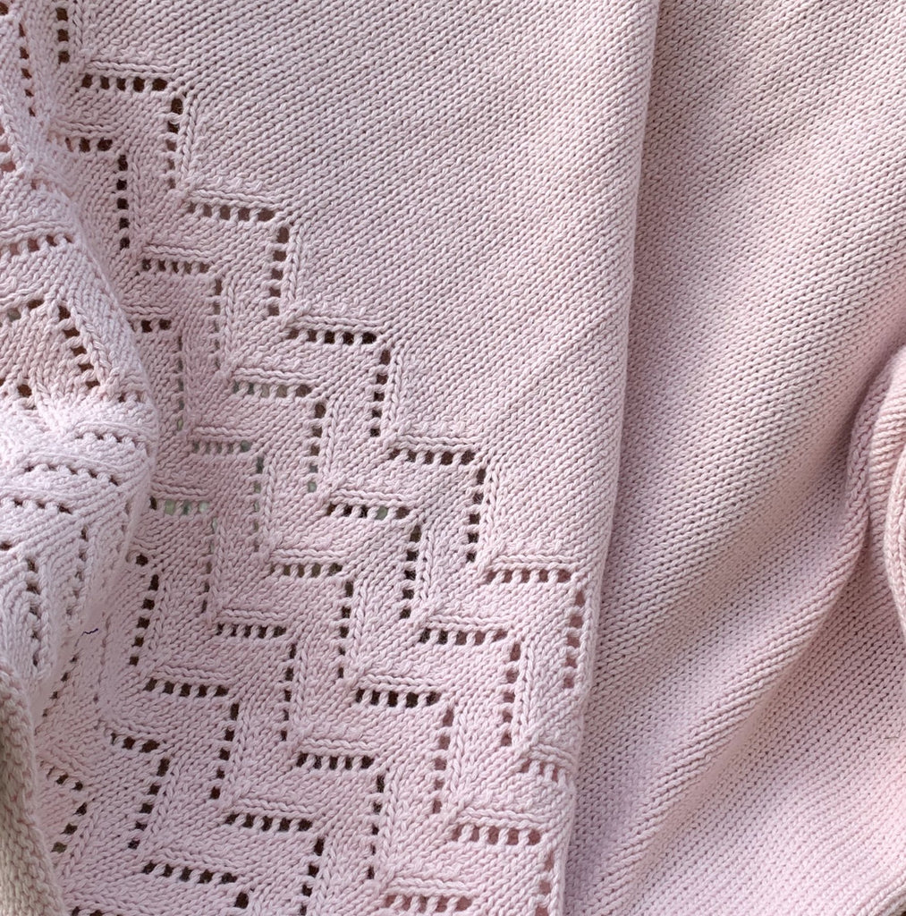 English Rose LinensThis beautiful blanket in a lovely dusky pink colour is made of 100% Pure Cotton. Good for the baby's pram or the moses basket it measures 70cms x 90cms . The lace pattern decorates each end.