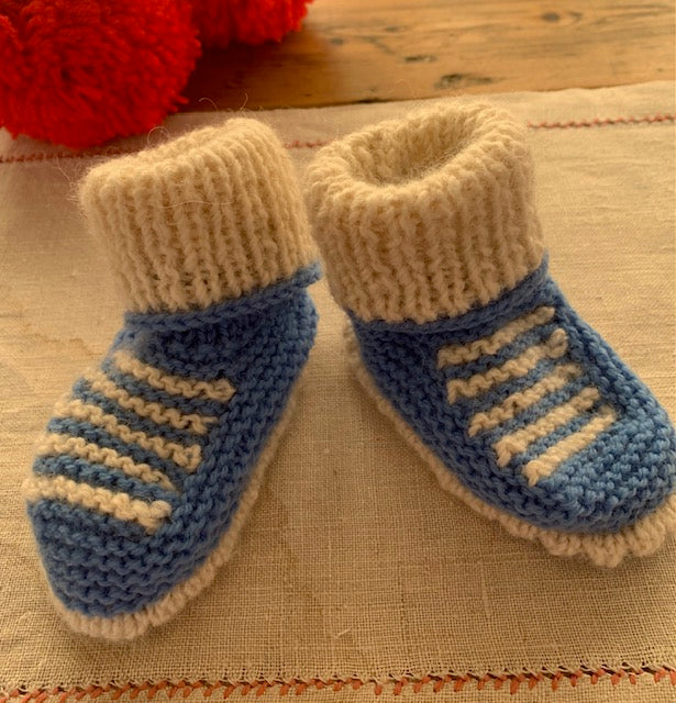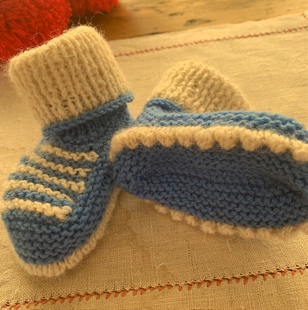 English Rose LinensThese Blue Bootees are made with super soft cosy wool ( Not acrylic). They were knitted by an experienced knitting granny! They would keep little feet snug and warm.